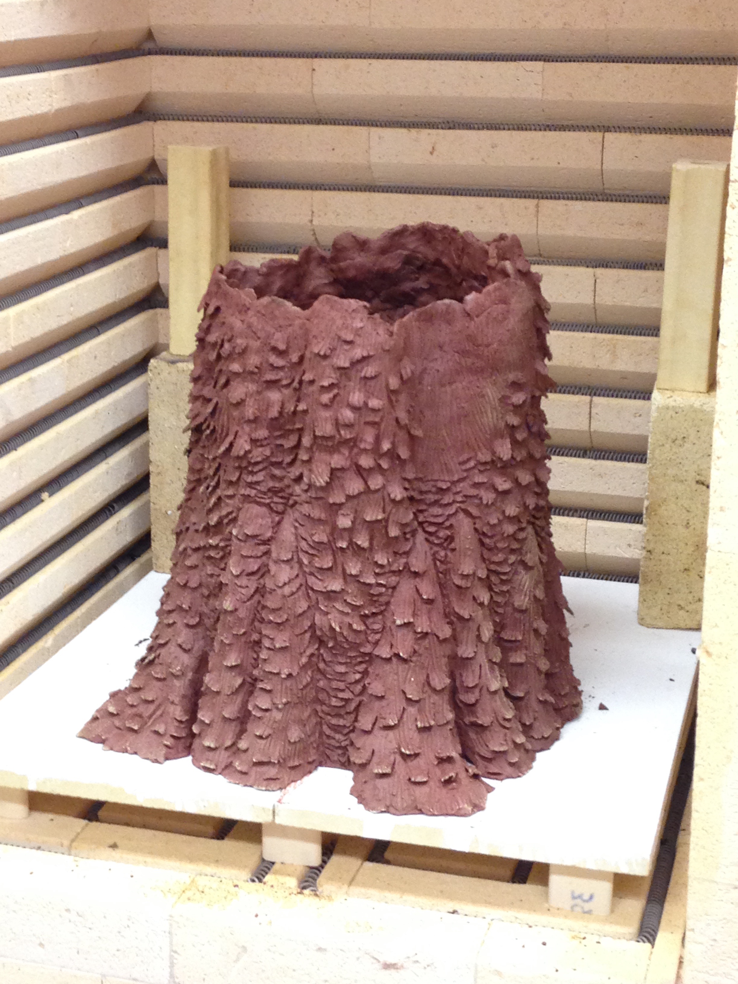 Using ceramics and my sculptural knowledge, for one project I had to find a tree located on campus and build a model of that tree from sight. I used red earthenware clay and a coil method to build the form up, creating almost a mossy effect. This stood almost three feet high.